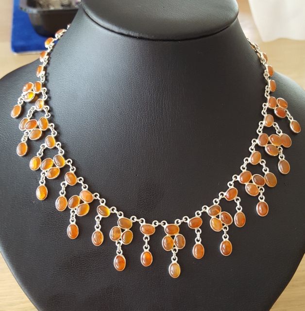 Carneool ketting, binnenlengte max.44 cm. min. 39.5cm., verstelbaar