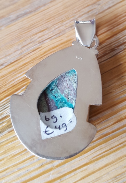 Totale lengte ca. 4.5 x 2.5 cm breed, zonder oog ca. 3.3 x 2.5 cm (op zijn breedtste), in zilver gezet